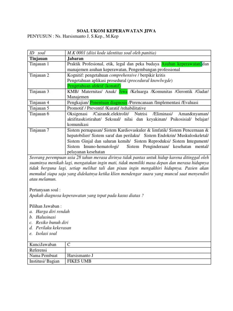 Template soal perawat (beri warna hijau pada item yang sesuai pada kolom jabaran) id soal.