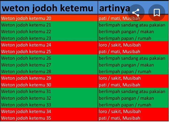 Tafsiran jodoh dalam primbon jawa adalah kamu dan pasangan sangat cocok dan berjodoh. Penggambaran sederhana dari kelahiran weton ini ibarat lakuning rembulan. It is possible to sign up on your own on jamendo community and overview and share your views on the location. Original posted by joe_satriyani03 weton iku penjumlahan gan. Primbon jawa semacam perhitungan atau ramalan bagi suku jawa itu sendiri, dan memiliki unsur pembahasan tentang manusia, hewan atau alam. Menyembuhkan teluh gantung waris dengan cara islam 1. Dan berikut 9 macam perhitungan weton jodoh terbaik : 3 weton kelahiran paling sakral dan memiliki bakat spiritual tingkat tinggi Ramalan zodiak cinta hari kamis, 25 maret 2021, pisces harus bisa menahan ego 1. Hitungan jawa ketemu 33 menandakan pegat. menurut tabel di atas, hitungan weton ketemu 25, 1, 9 dan 21 adalah pegat atau pegatan yang dalam bahasa indonesia berarti bercerai.sudah jelas diyakini bahwa pasangan yang mendapatkan arti ini dari perhitungan weton jawa akan sering menghadapi masalah ke depannya. Jumlah neptu dari kedua penanggalan tersebut untuk tanggal lahir kamu dan pasangan supaya hasilnya bisa didapatkan. Orang dengan weton tersebut merupakan mereka yang lahir pada hari: